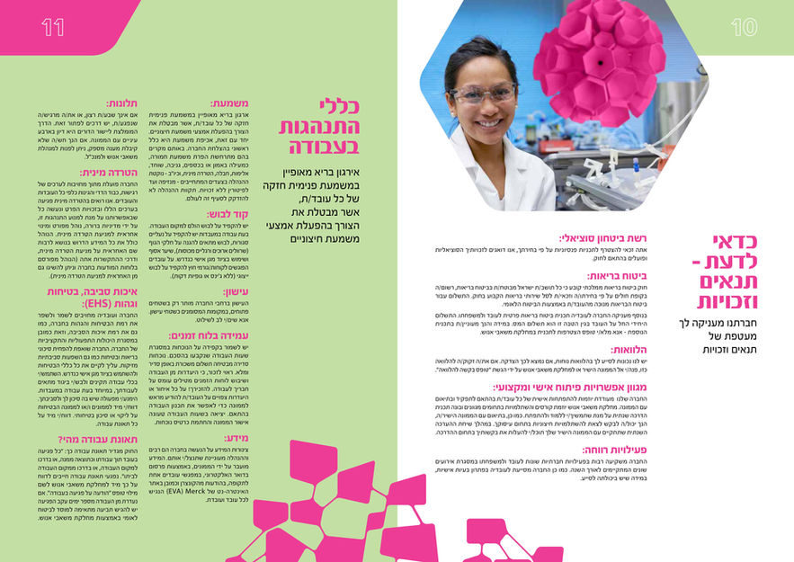 The challenge: Sticking to the existing brand book, colors and elements and yet to create a vibrant, reader friendly and attractive brochure both in Hebrew and English, both for print and digital.