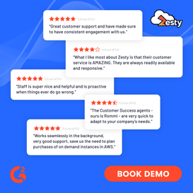 Zesty, helps to overcome inefficiencies related to static cloud infrastructure , bringing customers the ability to automatically scale cloud resources such as storage, discount programs, CPU & RAM, to optimally match application demand. As a result, businesses dramatically reduce cloud costs and maintain perfect app performance, while also minimizing the time and effort of managing infrastructure.
